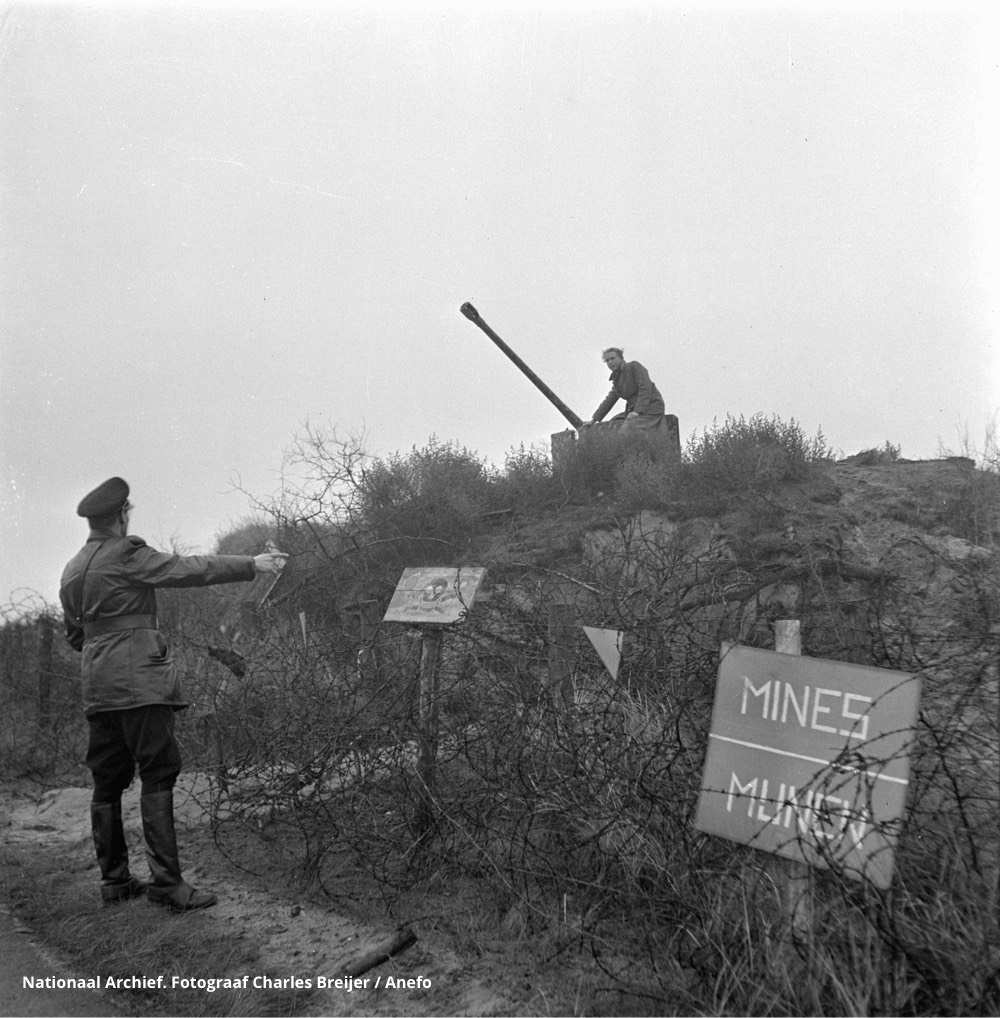 De Duitsers lieten na de bevrijding van ons land in 1945 een verruïneerd kustlandschap achter. In dorpen en steden aan zee waren talloze gebouwen gesloopt of zwaar beschadigd. De natuur had zwaar te lijden gehad onder de jarenlange aanwezigheid van zoveel militairen. Overal was gegraven en stond het vol met verlaten bouwwerken. Nog maandenlang was de kuststrook voor de bevolking verboden gebied vanwege de mijnenvelden en achtergebleven munitie. Duitse oorlogsgevangenen werden tewerkgesteld om dit op te ruimen. Ook wilde de overheid voorkomen dat de bevolking de bunkers zou plunderen. Bruikbare bouwmaterialen zoals ijzer en hout waren na de oorlog schaars en konden goed worden gebruikt voor de wederopbouw van ons land. Daarnaast onderzocht de Nederlandse krijgsmacht of de restanten van de voormalige Duitse verdedigingslinie nog mogelijk militair nut hadden. Alle 150.000 gemetselde en betonnen verdedigingswerken werden opgemeten en er werden plattegronden van getekend. Het overgrote deel bleek uiteindelijk nutteloos voor de na-oorlogse militaire defensie van ons land. De overheid gaf de bunkers ‘vrij’ voor hergebruik, ondergraven of sloop.